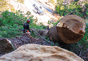 木の高さや周囲の障害物を考慮し、適切な伐採プランを提案します。1本単位での伐採から伐根作業まで対応。立ち会いが難しい場合でも作業可能です。