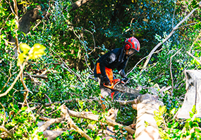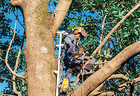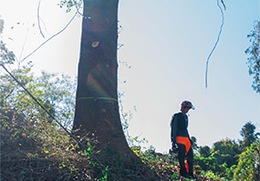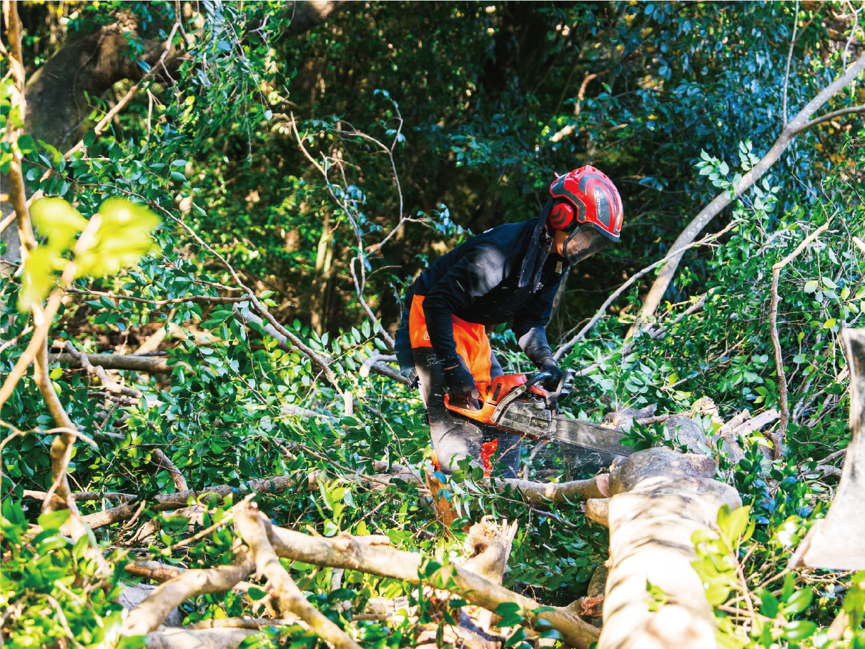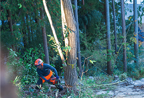 木の高さや周囲の障害物を考慮し、適切な伐採プランを提案します。1本単位での伐採から伐根作業まで対応。立ち会いが難しい場合でも作業可能です。